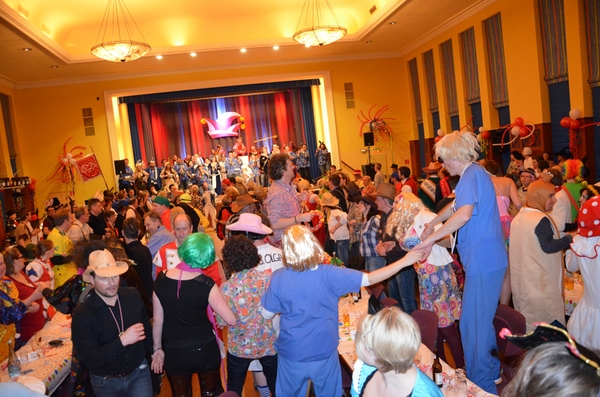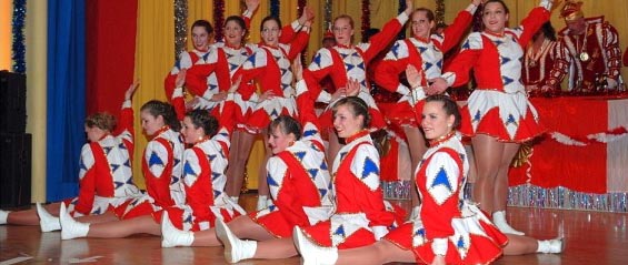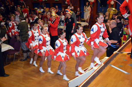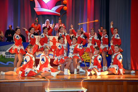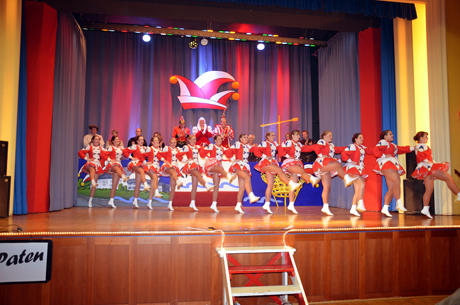 Als Gemischte Tanzgruppe traten 11 Hupfdohlen von den 7 Felsen auf die auf die Bezeichnung Hdvd7F hörten. Trainerin Claudia Brandt erhielt für die Einstudierung des Tanzes einen Blumenstrauß überreicht. Die Gesangsgruppe „Weißtalspatzen“ glänzten auch diesmal wieder im vollen Haus und nach dem Musik von den Paten erfolgte dann eine 20 minütige Polonäse durch den Saal. Mit einem Tanzmedley begeisterten schließlich die Prinzengarde des KKC auf. Der Höhepunkt des Abends in der mit rund 350 Närrinnen und Narren war auch wieder einmal die Flying Ladys der 14 Jungen Frauen die nach der Musik von „Born to be alive“ tanzten. Zum großen Finale traten alle Beteiligten noch einmal auf und sangen „An Tagen wie diesen…“ und es wurde anschließend noch eine lange Nacht für die Besucher auf der diesjährigen Festsitzung.